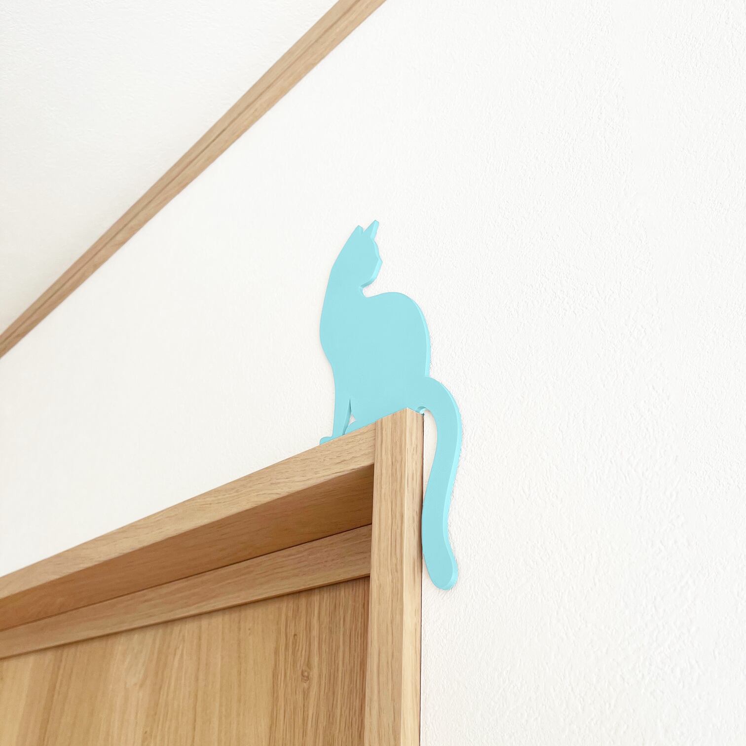 ドアコーナーデコ 猫 ライトブルー